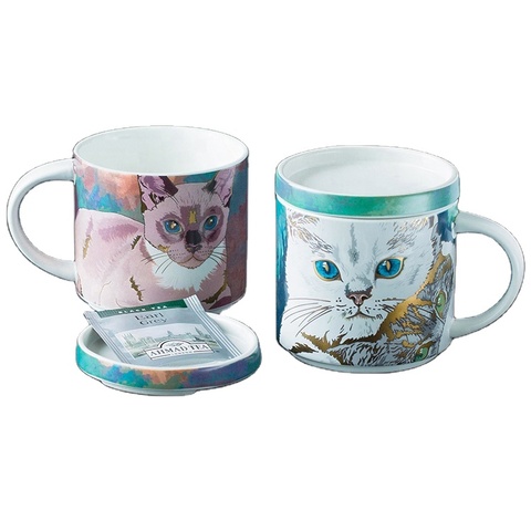 Tasse à café en céramique entièrement imprimée 430ml avec couvercle pour tasse en porcelaine Cappuccino & Latte pour boissons chaudes