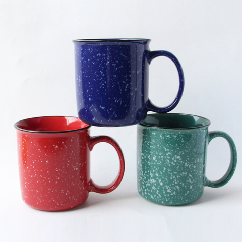 Tùy chỉnh 500ml an toàn thực phẩm gốm cornmeal Mugs lốm đốm Men Cắm Trại Mug với logo in ấn